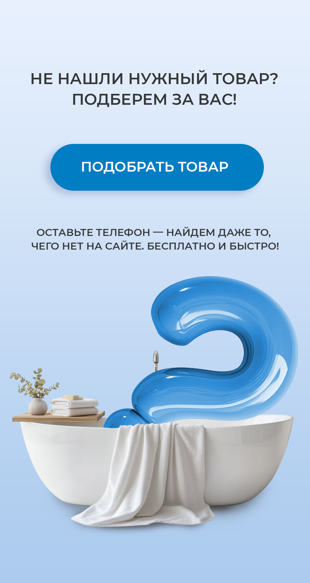 СантехникаМебель для ванной комнатыАксессуары для ванной комнатыПлиткаИнженерная сантехникаВода и водоочисткаКомплектующиеКлининг